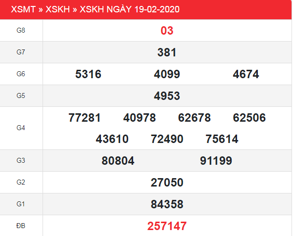 Thống kê Đặc Biệt XSKH 26/2/2020