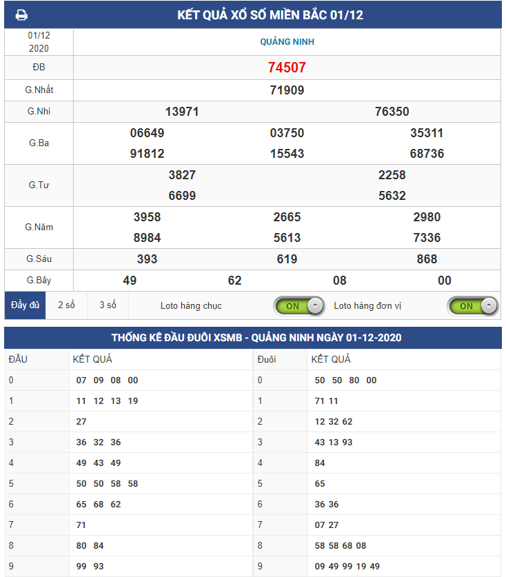 • Loto được chơi nhiều ngày 2/12/2020: 05 – 49 – 50 – 27 – 72 – 16 – 83 – 94 – 61 – 38 – 86 – 02 – 68 – 69 – 96 – 20 – 42 – 53 – 35 – 48