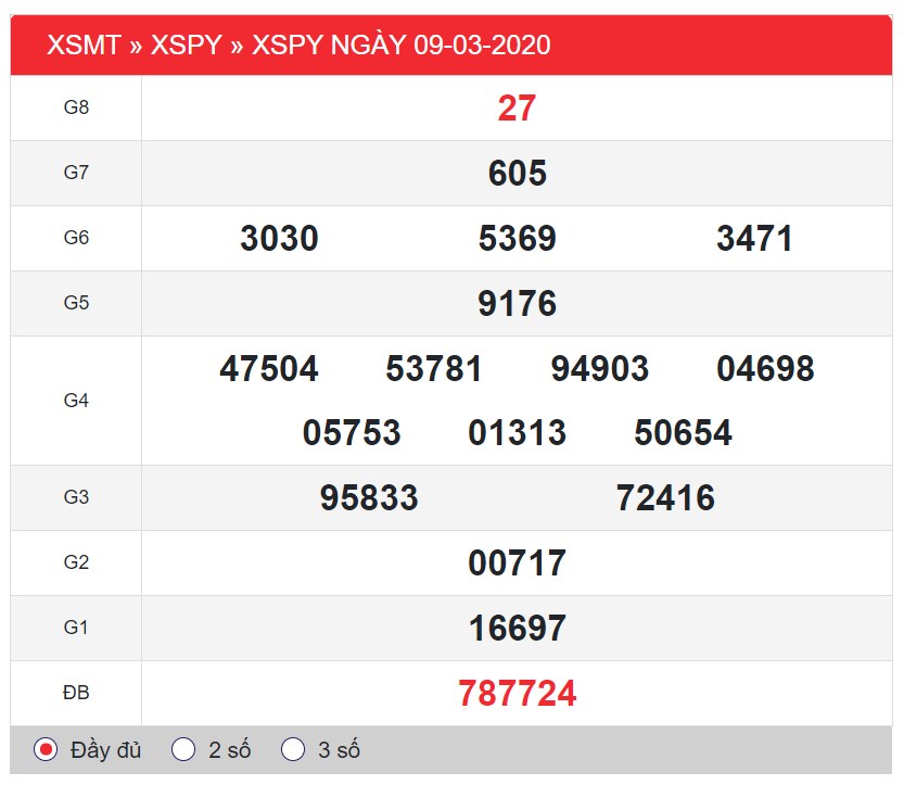 Thống kê Đặc Biệt XSPY 16/3/2020