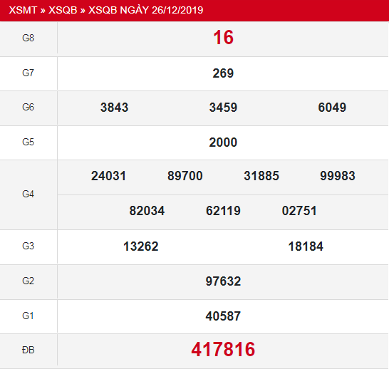 Dự đoán XSQB thứ 5 ngày 2/1/2020 hôm nay sẽ mang đến cho anh em phần dự đoán giải 8, giải đặc biệt, lô xiên 2, lô xiên 3. Dựa vào các thống kê dàn đặc biệt về nhiều nhất và lô gan lâu về nhất của xổ số Quảng Bình, anh em dễ dàng lựa chọn được con số may mắn, chính xác nhất!