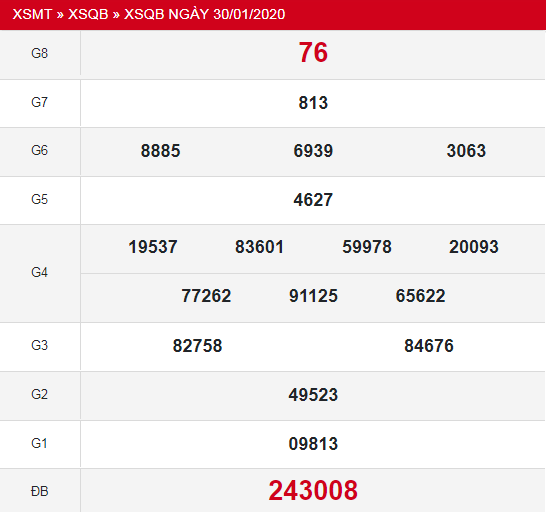 Soi cầu 3 miền XSQB thứ 5 ngày 6/2/2020 mang tới anh em gợi ý các cặp số đẹp nhất của Giải 8, Giải ĐB, lô tô 2 số và lô tô 3 số. Mời anh em tham khảo và lựa chọn!