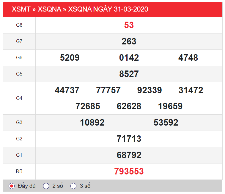 Để có được những nhận định soi cầu XSQNA chính xác nhất, mời anh em xem lại kết quả xổ số tỉnh Quảng Nam lần quay trước