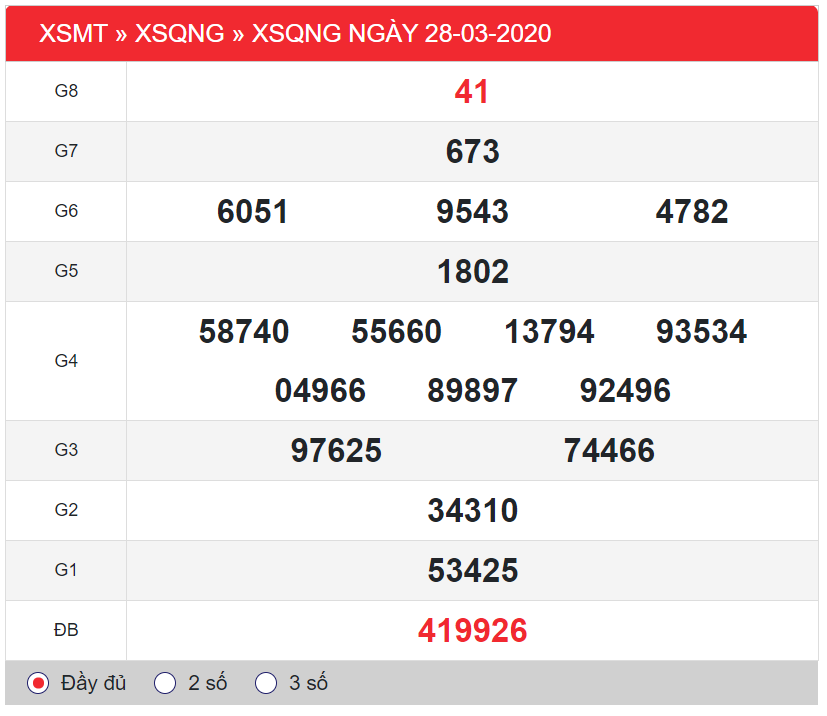 Để có được những nhận định soi cầu XSQNG chính xác nhất, mời anh em xem lại kết quả xổ số tỉnh Quảng Ngãi lần quay trước
