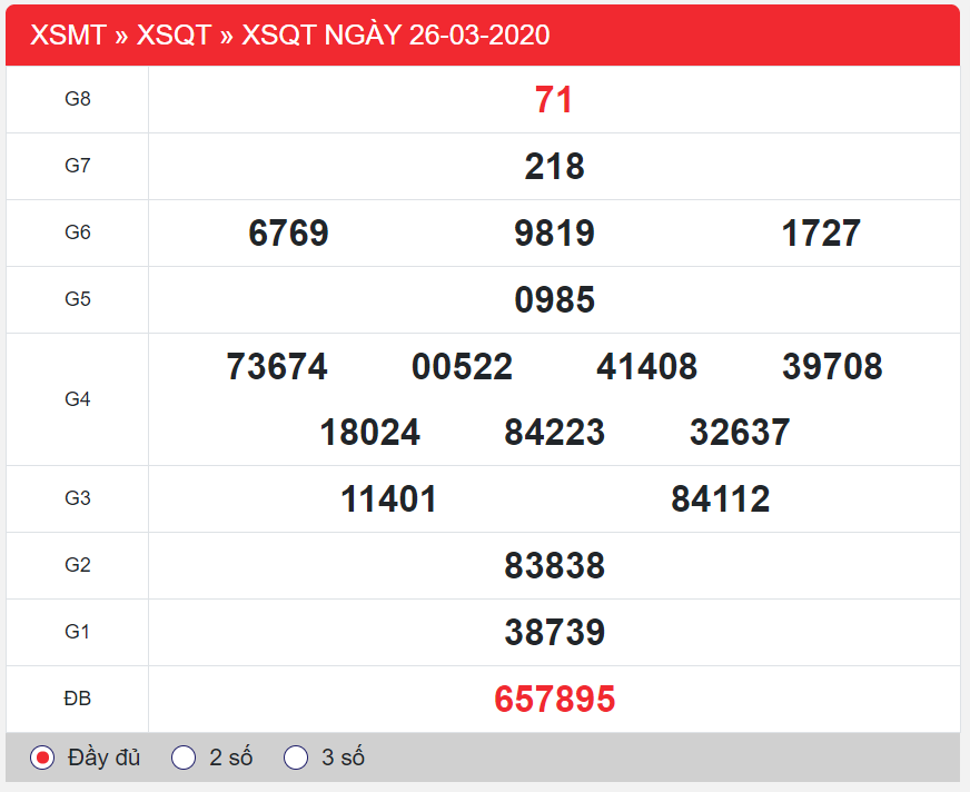 Để có được những nhận định soi cầu XSQT chính xác nhất, mời anh em xem lại kết quả xổ số tỉnh Quảng Trị lần quay trước