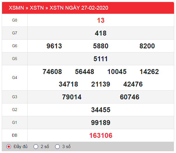 Để có được những nhận định soi cầu XSTN chính xác nhất, mời anh em xem lại kết quả xổ số tỉnh Tây Ninh lần quay trước