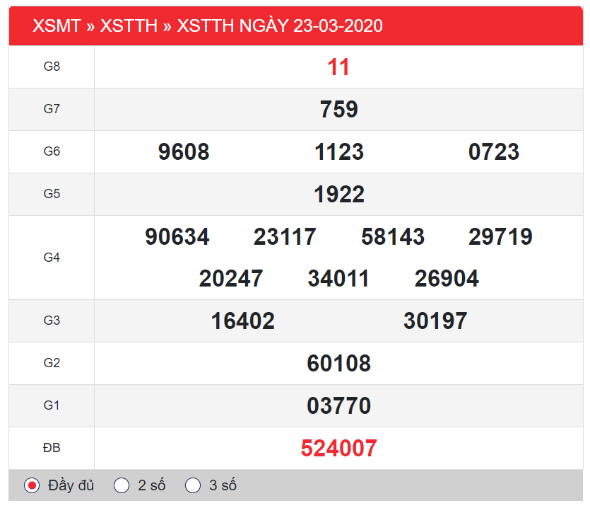 Để có được những nhận định soi cầu XSTTH chính xác nhất, mời anh em xem lại kết quả xổ số tỉnh Thừa Thiên Huế lần quay trước