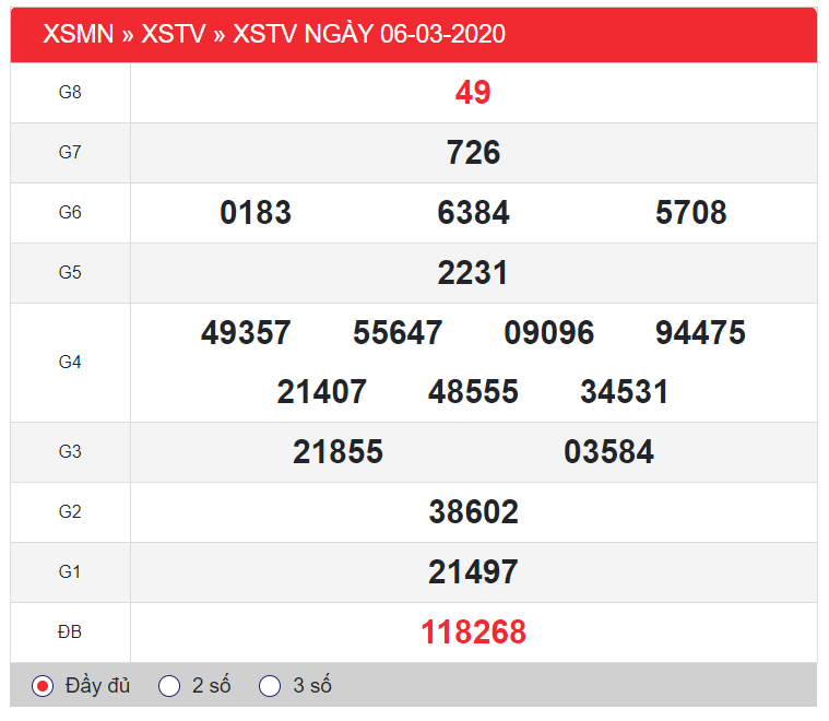 Thống kê Đặc Biệt XSTV 13/3/2020