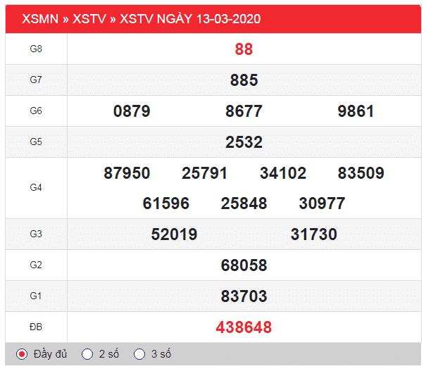 Soi cầu 3 miền XSTV thứ 6 ngày 20/3/2020 mang tới anh em gợi ý các cặp số đẹp nhất của Giải 8, Giải ĐB, lô tô 2 số và lô tô 3 số. Mời anh em tham khảo và lựa chọn!
